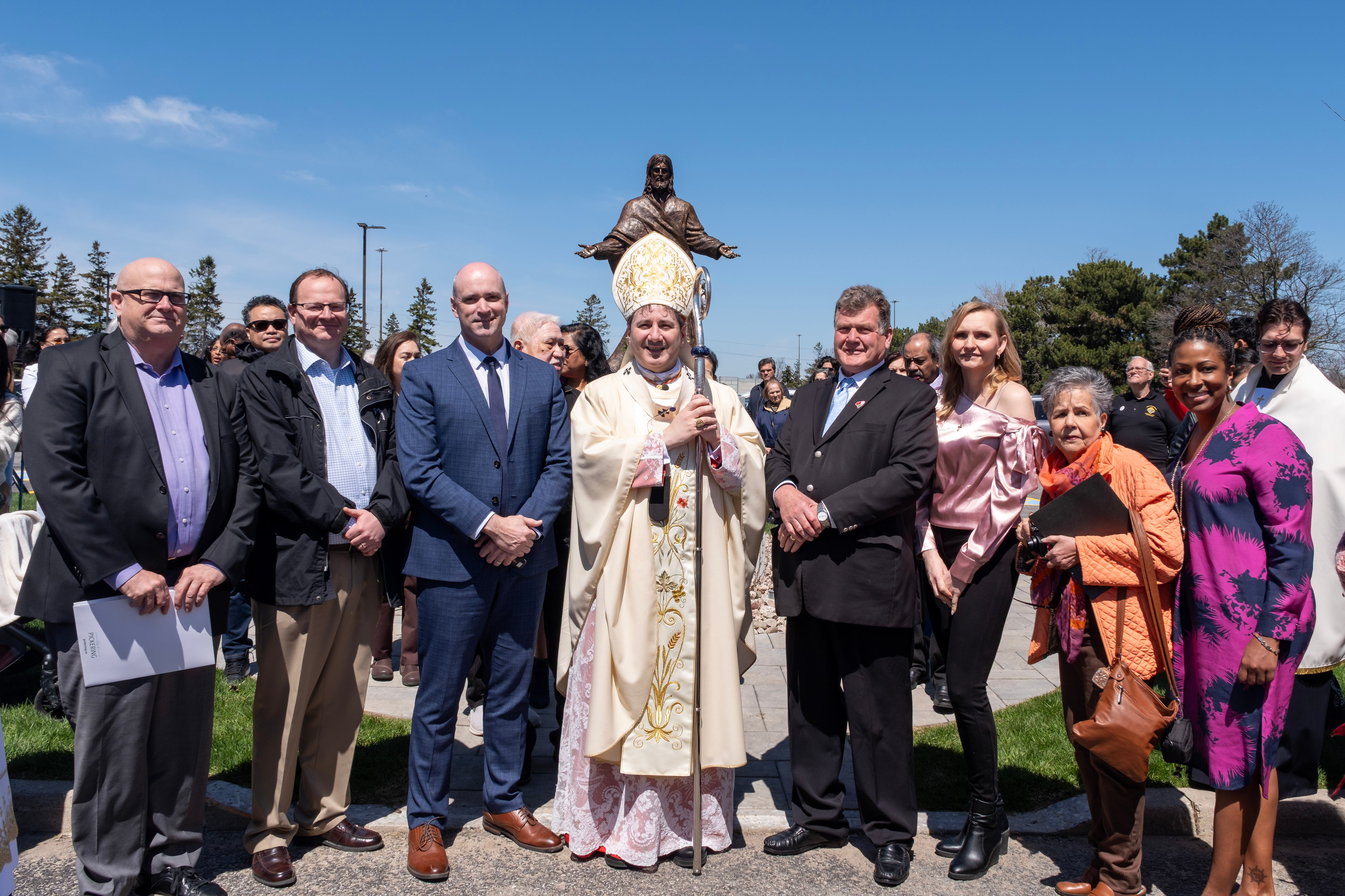 A highlight of the visit was the blessing of the newly installed statue of the Holy Redeemer, created by renowned Canadian sculptor Timothy Schmalz. The statue stands as a lasting legacy of the parish’s anniversary year, inviting all who encounter it to reflect more deeply on Christ’s presence and mission, while honouring the rich history of the parish community.